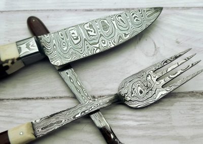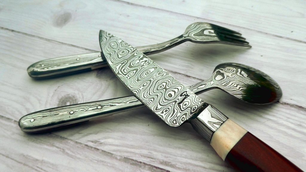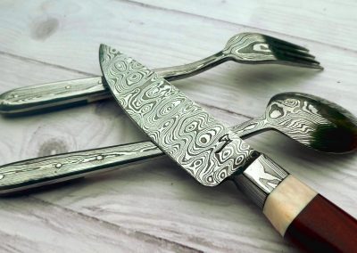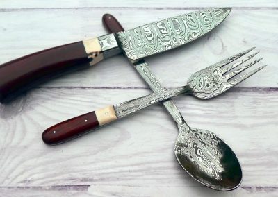 Damascus knife, fork and spoon set